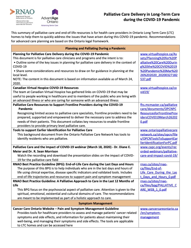 Palliative Care Delivery in Long Term-Care during the COVID-19 Pandemic Post author By Registered Nurses’ Association of Ontario Post date 27 March 2024